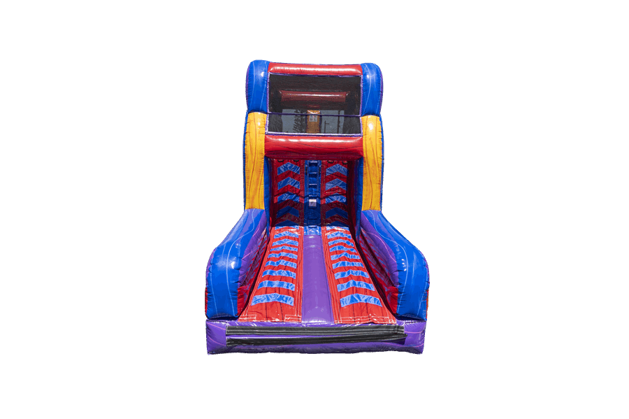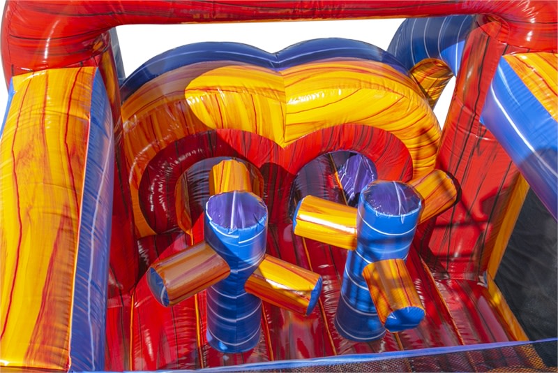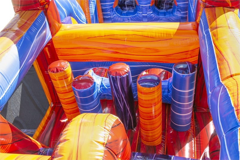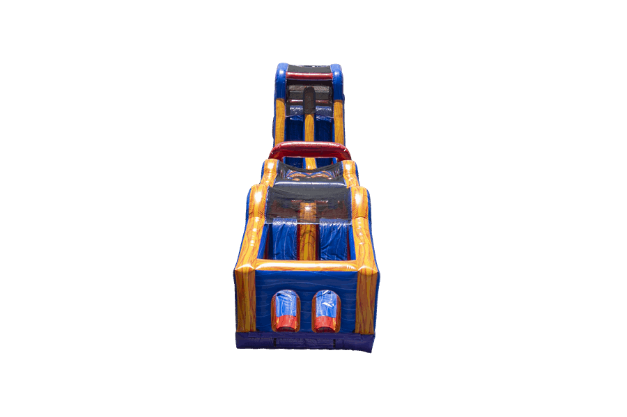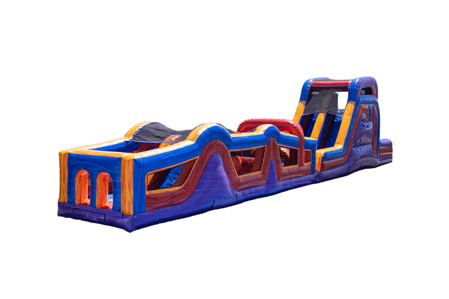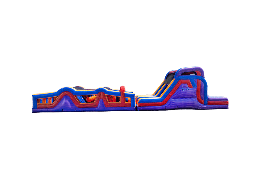 Experience heart-pounding fun with the 70' Mega Marble Warped Wall Obstacle Course. This vibrant, marble-colored inflatable spans 70 feet of pure excitement. It includes 35 feet of technical obstacles and an 18-foot tall warped wall with a dual-lane slide. Race side-by-side and finish first. Perfect for parties, team-building, and special events. 🚀