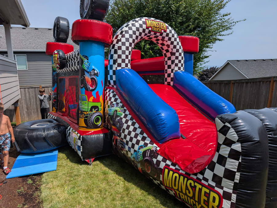 Looking for an unforgettable way to supercharge your next event? The Monster Truck Funsize Combo is the ultimate inflatable play center that brings the excitement of a truck rally straight to your backyard or party venue! Specially designed for kids under age 14, this action-packed combo unit will keep kids bouncing, sliding, and smiling all day long.