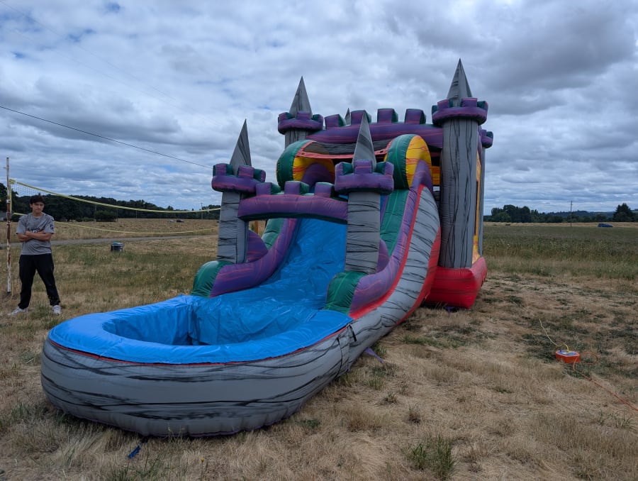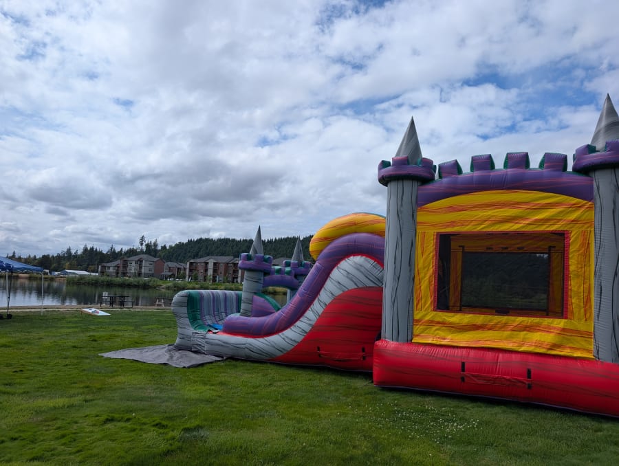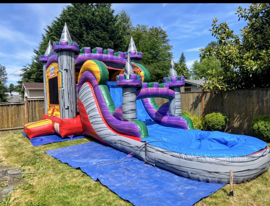 Looking for the ultimate centerpiece for your next party or event? The Fortress Castle Large Combo is here to turn your celebration into an unforgettable experience! Featuring bold colors—grey, purple, red, green, and yellow with eye-catching marbling—this inflatable bounce house and slide combo is designed to captivate kids and adults alike. Whether you’re planning a birthday party, community gathering, or school event, this versatile combo will be the highlight of your special day. π°π