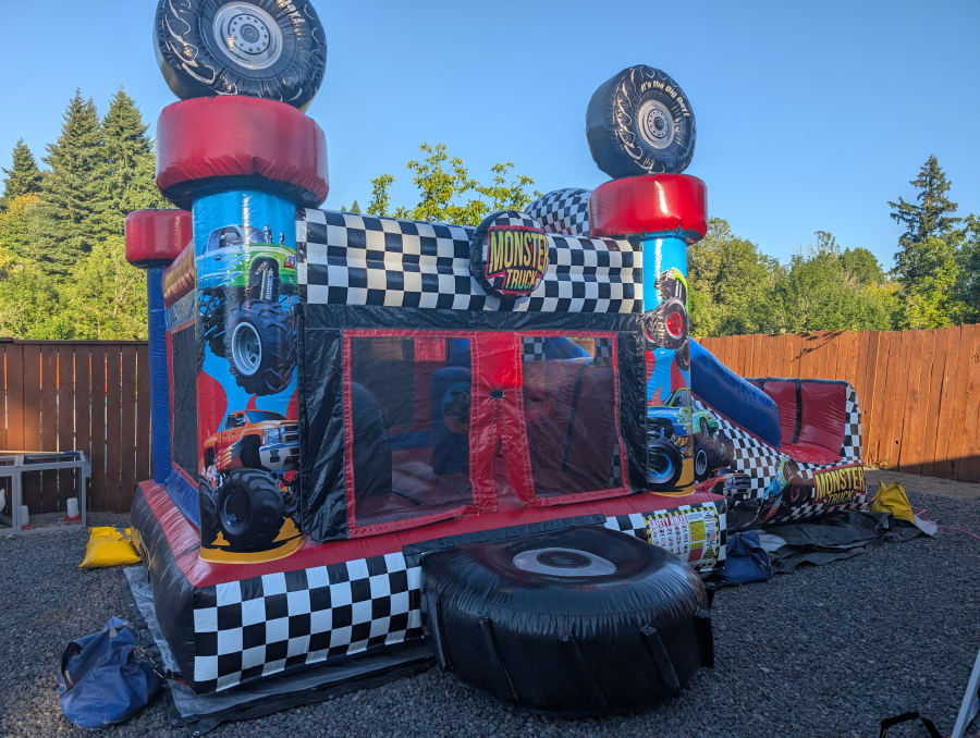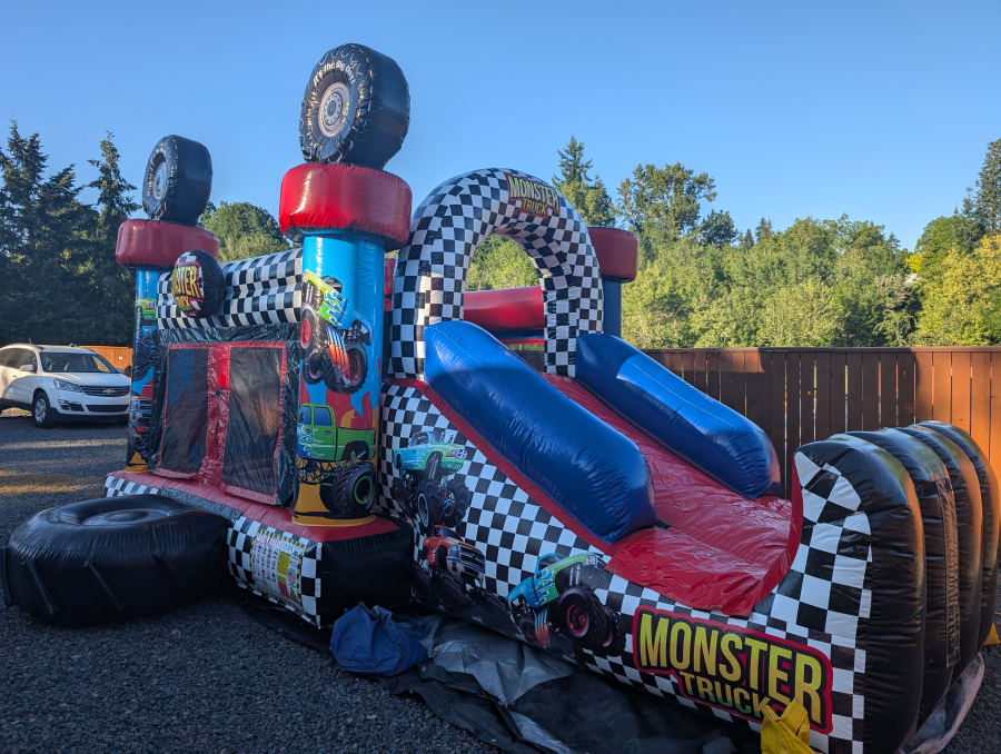 Looking for an unforgettable way to supercharge your next event? The Monster Truck Funsize Combo is the ultimate inflatable play center that brings the excitement of a truck rally straight to your backyard or party venue! Specially designed for kids under age 14, this action-packed combo unit will keep kids bouncing, sliding, and smiling all day long.