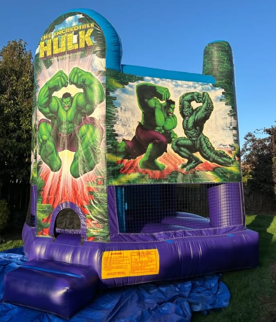Your peace of mind matters. Our jumper is constructed from premium, kid-safe materials and undergoes strict safety checks before every delivery. Setup and takedown are handled by our professional team, so you can focus on having fun without the stress. With our bounce house rentals in Salem, OR, you get reliability, safety, and top-tier service every time! Don’t miss out on the chance to make your next event truly incredible! Reserve the Incredible Hulk Jumbo Jumper now and let your guests unleash their inner superheroes. Fun, laughter, and unforgettable memories are just a bounce away! 🚀✨