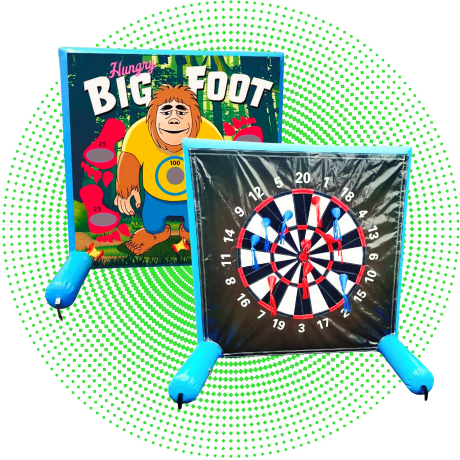 Bring double the excitement to your next neighborhood block party, school carnival, or company picnic with our Giant Darts & BigFoot Challenge 2-Sided Game. This towering 6 ft attraction delivers two crowd-pleasing games in one unit — perfect for family-friendly fun and competitive moments that get everyone cheering. Our team takes care of delivery, safe setup, and pickup, so you can relax and enjoy the laughter and high-fives. We love seeing local events come alive, and this game is a fast favorite for kids and adults alike.
