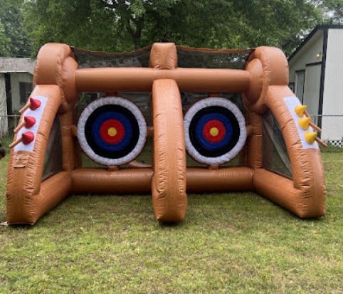 Bring a crowd-pleasing favorite to your next gathering with our Double Axe Throwing setup. Our team loves helping local schools, community groups, and neighborhood events create memorable moments — and this attraction is a guaranteed hit. With two lanes side-by-side, guests can take turns or challenge a friend for some friendly competition. Safe, soft velcro axes mean all the excitement without any sharp edges, so everyone from kids to grandparents can join in. 😊