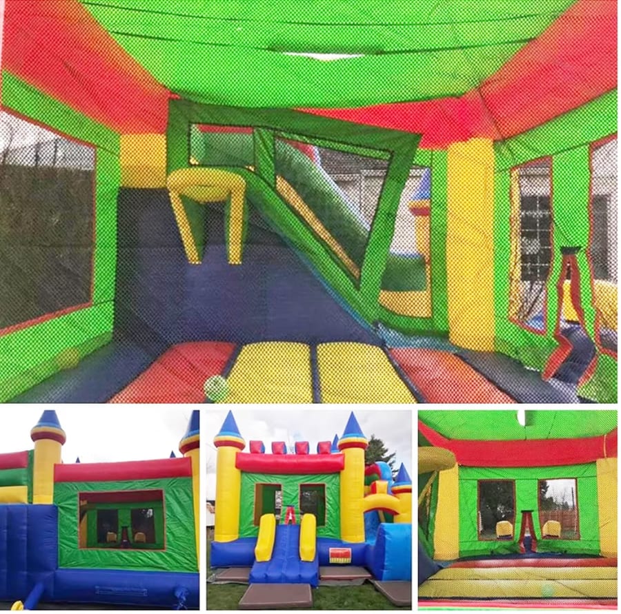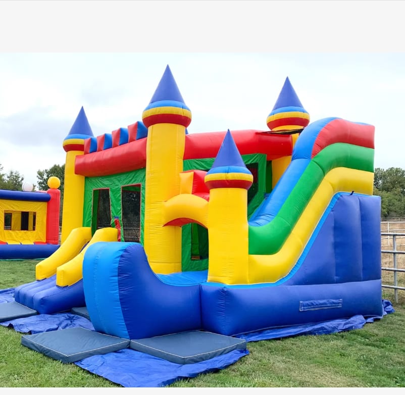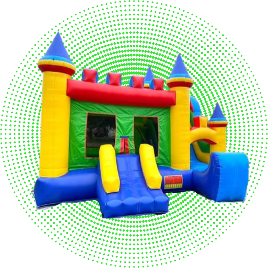 This combo stands out for its bold, cheerful appearance and versatile fun factor. Its combination of bouncing, climbing, and sliding activities ensures that every guest stays entertained for hours. Built with premium materials, safety features, and vibrant colorblocking, this inflatable castle promises style, fun and peace of mind for event hosts. The colors also happen to coordinate wonderfully with our Slip N Slide or Obstacle course!