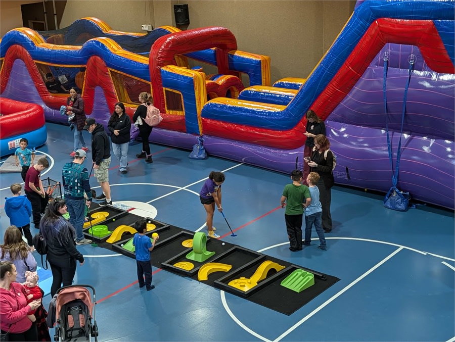 Our Easy Anywhere Mini Golf is the neighborhood favorite when you want fun without the fuss. Lighter and more flexible than our Oregon-themed course, this portable setup fits around corners, down hallways, across carpets, or out on the grass. Perfect for birthday parties, school events, company picnics, or a casual family get-together — we bring the putters, balls, scoring sheets, and big smiles. 😊