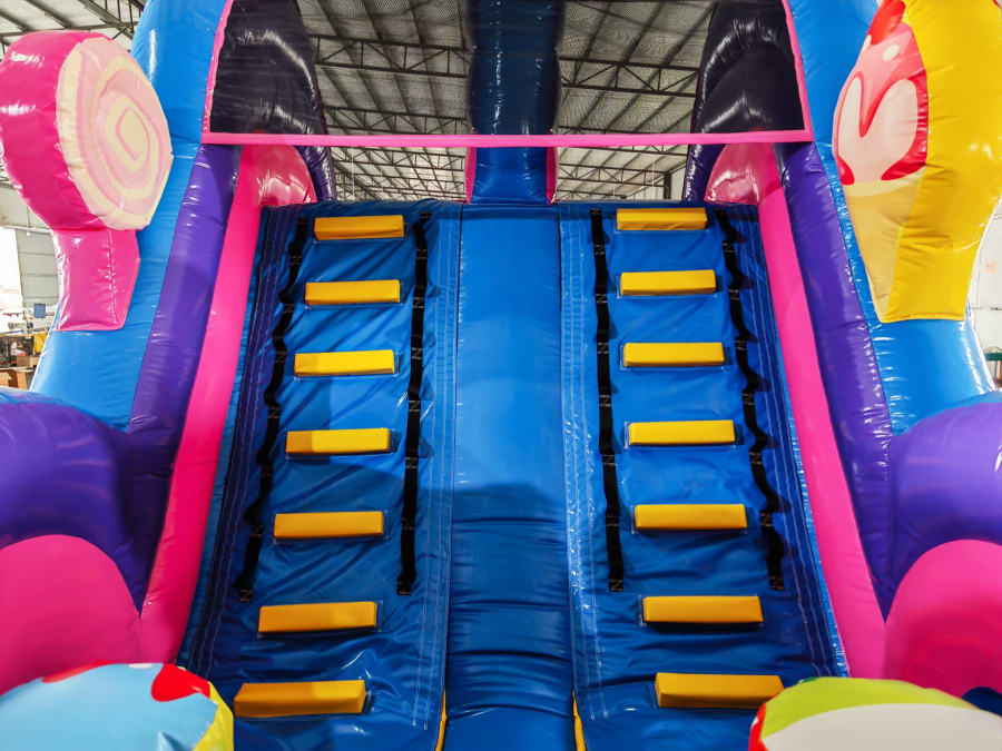 Bring a taste of Candyland to your next event with our bright, whimsical Candyland Obstacle 40'. Our team loves helping neighborhood parties, school bashes, Valentine’s Day events, and holiday get-togethers come alive — this dual-lane inflatable turns any backyard or field into a colorful raceway full of sweet surprises. Kids and adults alike will cheer as two racers sprint through the ice cream forest and leap the donut challenge toward that towering 16 ft slide. 🍬🏁