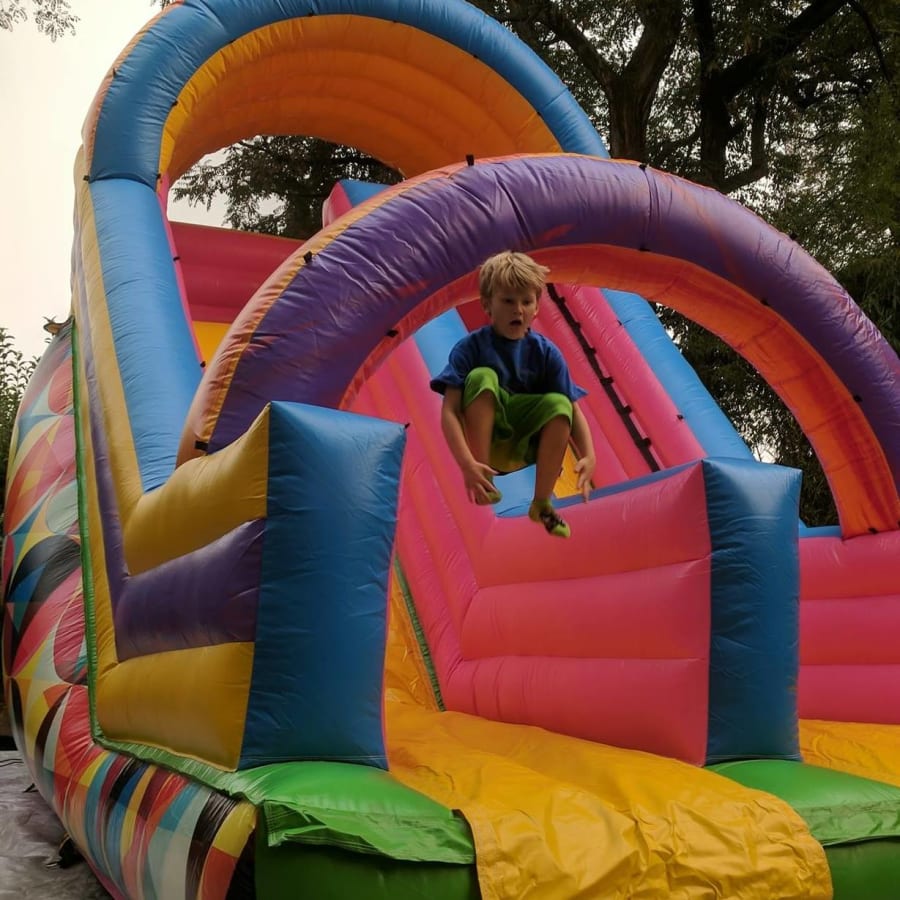Transform your next celebration with the dazzling Prismatic Mondo Slide, with optional GIANT pool! Perfect for birthdays, family gatherings, or any special occasion, this eye-catching large inflatable slide features vibrant kaleidoscope colors that instantly brighten up any event. Whether you’re planning a backyard bash or a community party, this waterslide is sure to be the highlight of your festivities. She is gorgeous, fun for adults or kids!